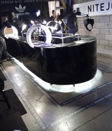 Si lo que deseas es mostrar tus productos mientras atiendes a tus posibles clientes en tu espacio, ¡La barra es lo ideal para ti! Se adapta al diseño de tu stand y resalta tu producto.
